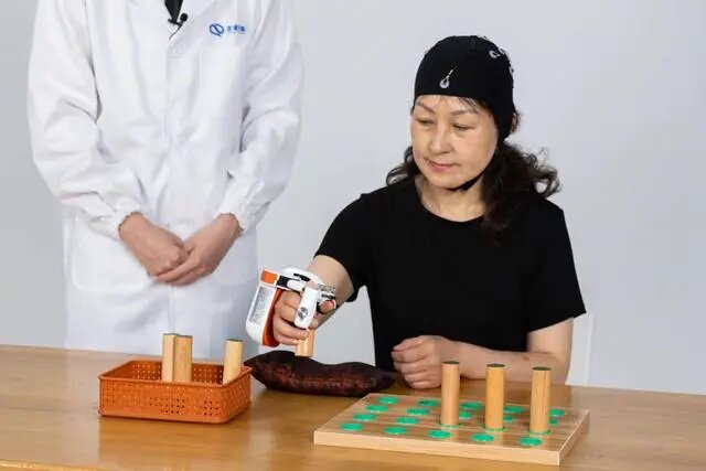 念通智能研发的eCon-Hand脑机接口主动康复训练系统使用演示,图片由受访人提供。